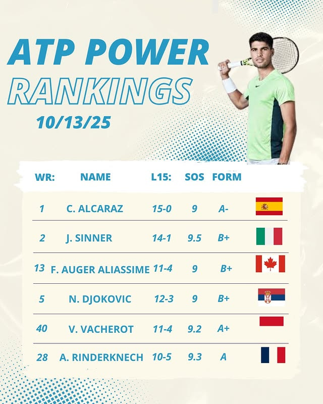 Vacherot’s performance earns him the No. 5 spot on my power rankings — I’ll need to see a bit more before I move him higher.